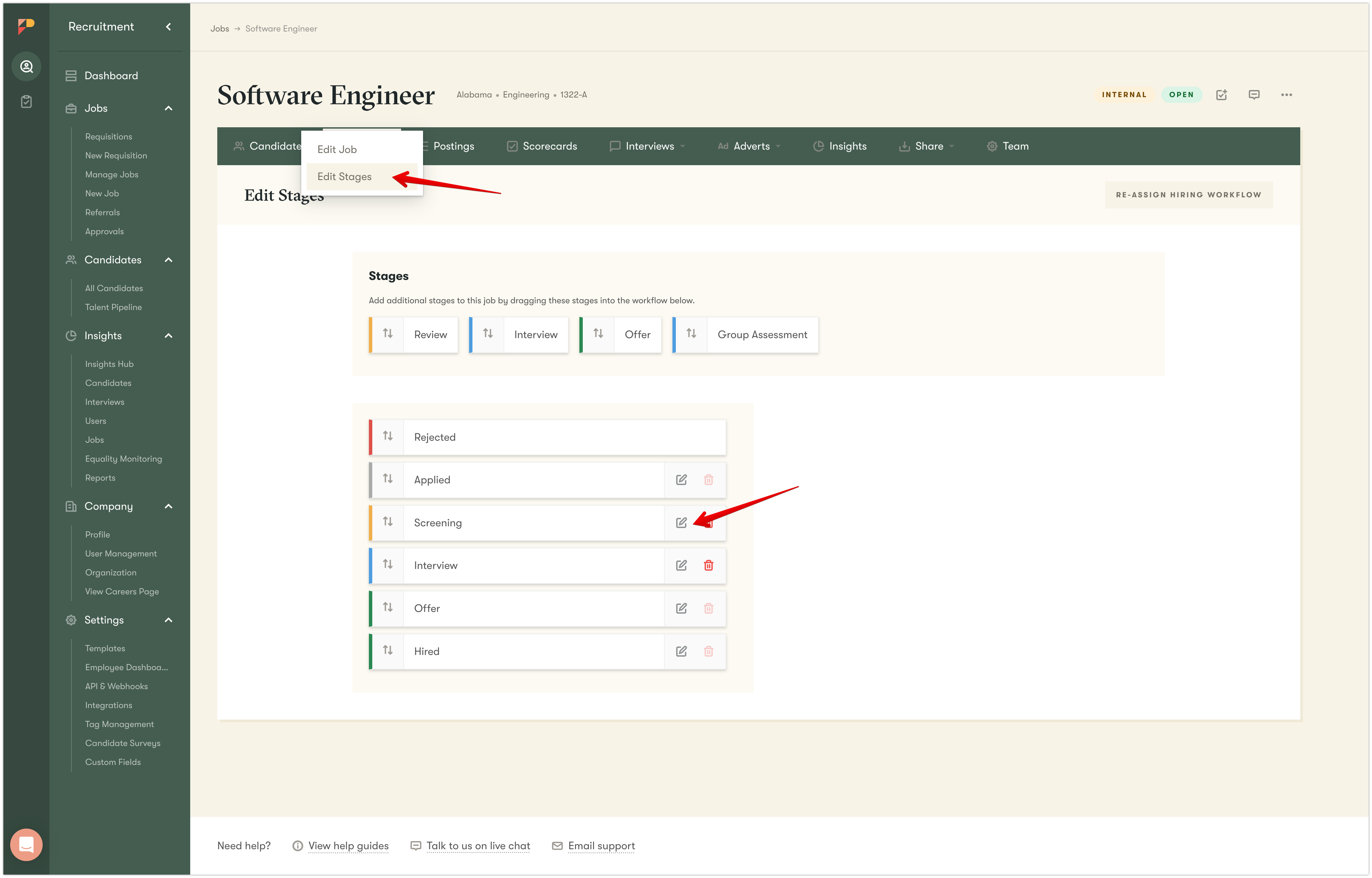 Stage Actions allow Pinpoint customers to automate integration plugin actions when a candidate is moved into a specific pipeline stage. That is for individual candidates, for **bulk actions **(bulk move to stage), as well as for scenarios when Pinpoint's Workflow Automations framework will move candidates. For example, automatically sending an assessment or triggering a background check when a candidate reaches the "Screening" stage or sending to HRIS when the candidate reaches the "Hired" stage.